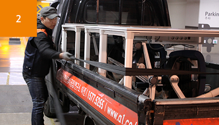 이동시 물품이 움직이지 않도록 안전바 고정작업 진행.