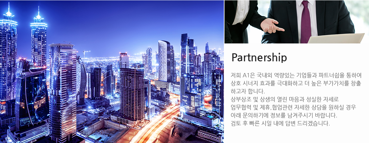 전략적 제휴를 통한 사업파트너 언제든지 환영합니다.